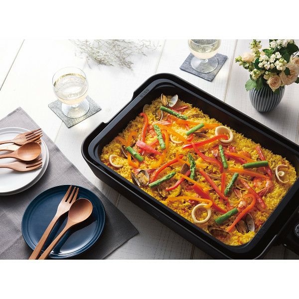 ●電源=AC100V・消費電力=1200W●コード長約2.5m●温度調節範囲=保温~250℃●付属品=樹脂ヘラ、温調器収納ケース、レシピブック