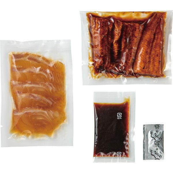 ●うなぎ蒲焼(うなぎ:国産使用)60g・たれ20ml・山椒0.2g・鯛漬け60g×各4